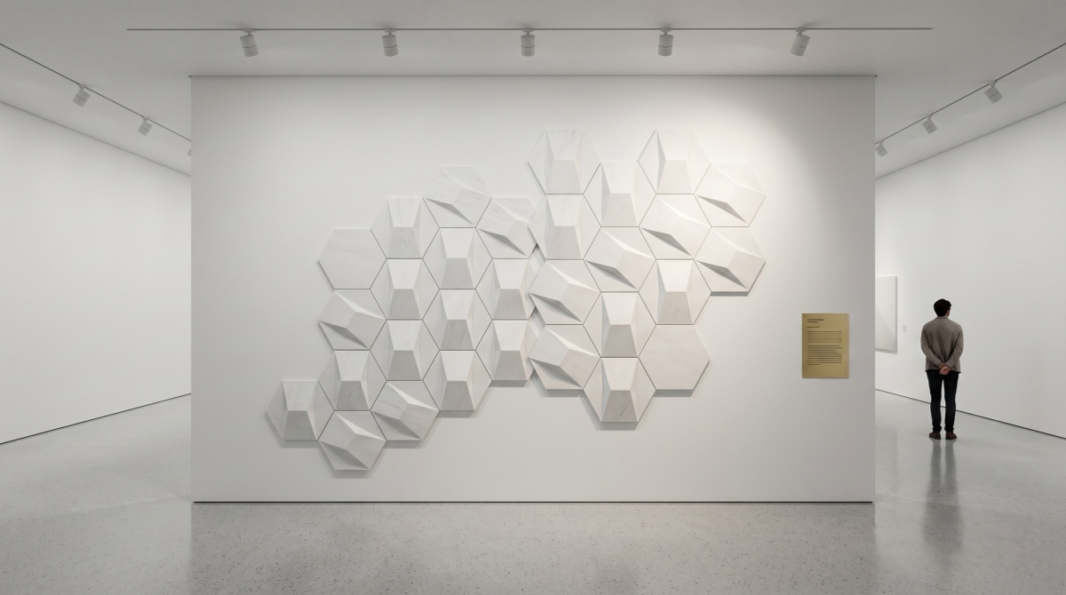 Explore a 3D CNC carved engineered marble wall system designed for luxury feature walls. Modular hexagon panels create sculptural depth, light-shadow effects, and project-ready interior wall solutions for hotels, villas, galleries, and reception spaces.