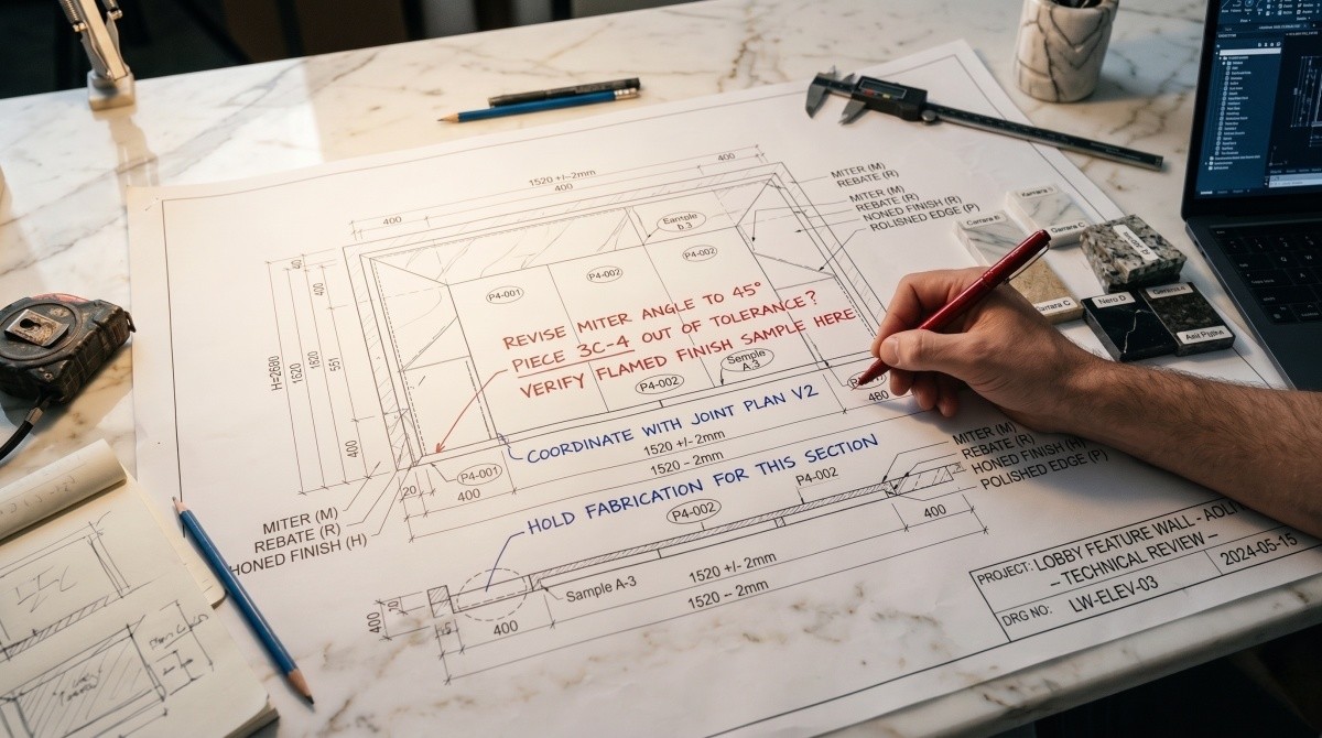 Atrasos em projetos com pedra geralmente começam muito antes da instalação. Uma análise cuidadosa dos desenhos de detalhamento pode reduzir erros de fabricação, confusões na aprovação e retrabalho dispendioso na obra.
